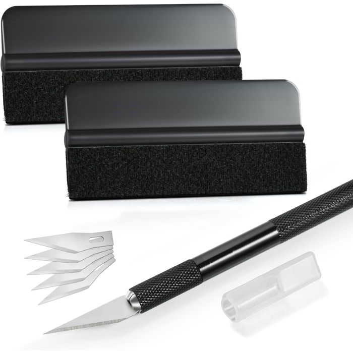 Folierungs-Werkzeug-Set mit Präzisionsmesser und Folienrakel (Schwarz)